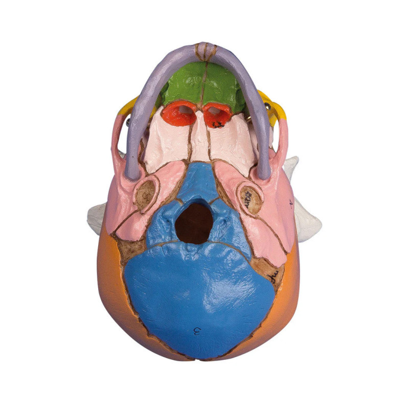 Onze didactische foetus schedel is een zeer realistisch model van een foetale schedel in de 38e week. De foetus schedel is gemaakt van speciaal botachtig materiaal, waarbij de afzonderlijke schedelbeenderen goed te zien zijn. Daarbij kunt u individuele details zoals de schedelnaden, fontanellen en uitwendige gehoorgang goed onderscheiden. De belangrijkste botten van het foetus schedel model zijn gekleurd om de identificatie gemakkelijker te maken.