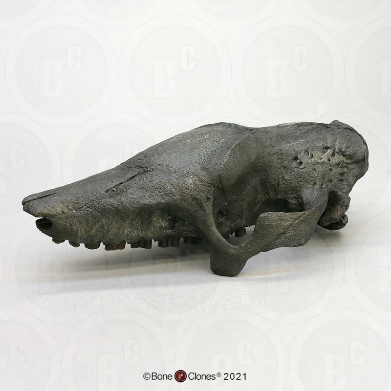 Dit model is een replica van een fossiel van de schedel van een holmesina floridanus, een uitgestorven gordeldier, die leefde van het late plioceen tot aan het vroege Pleistoceen, circa 1,8 miljoen jaar geleden. De schedel werd gevonden op het land, maar 2 van de tanden werden gevonden in de Aucilla rivier in Florida. Dit schedelmodel betreft alleen het cranium. De onderkaak is helaas nooit gevonden.