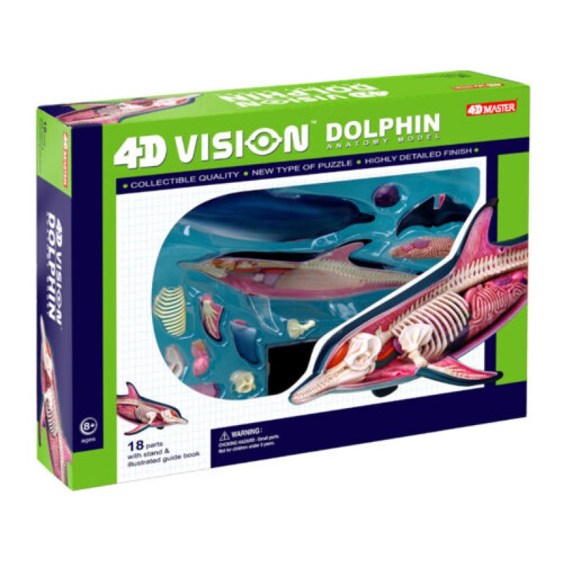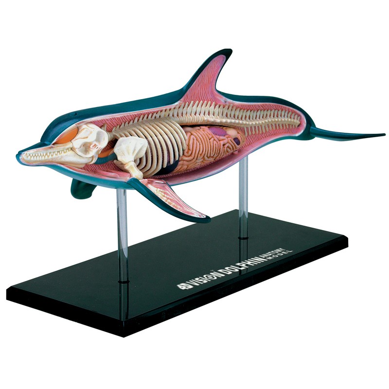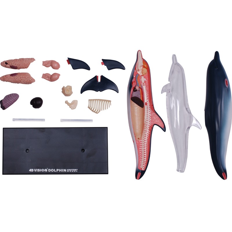 Dit 4D Dolfijn Model bestaat uit 18 verschillende onderdelen. De helft van het lichaam van de dolfijn is transparant, zodat interne organen zichtbaar zijn. Daarnaast zijn deze organen ook uitneembaar.