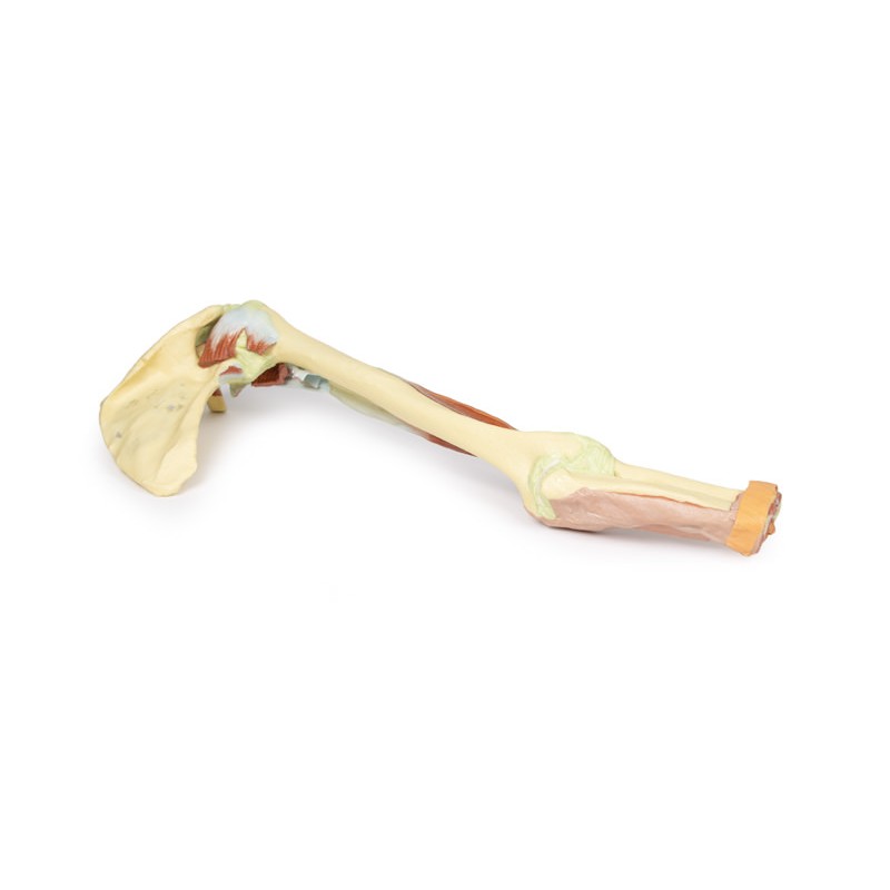 Dit 3D-geprinte exemplaar toont het volledige skelet en de ligamenten van de bovenste ledematen van ..