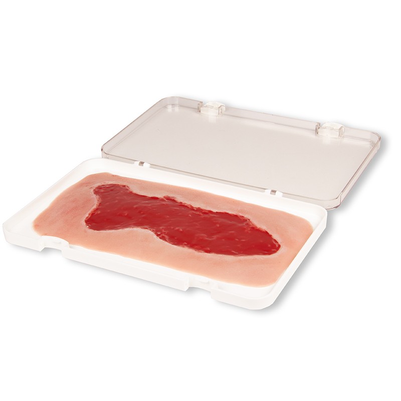 Deze zelfklevende wond vertegenwoordigt een veneuze beenzweer, een stofdefect in het weefsel van het onderbeen als gevolg van een chronische veneuze insufficiëntie. De getoonde granulatiefase vertegenwoordigt de meest voorkomende zweer (60% tot 80% van alle zweren) in het stadium van opbouw van granulatieweefsel. In deze fase is het erg belangrijk om het geschikte verband te gebruiken om wondgenezingsstoornissen te voorkomen.