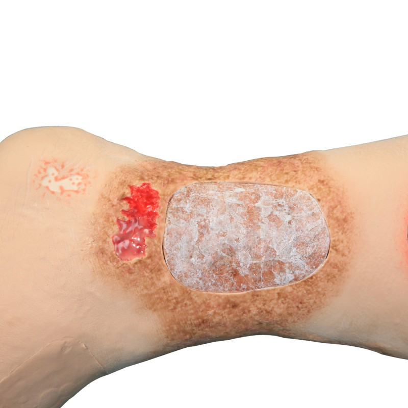 * Sommige aandoeningen die op dit model worden weergegeven, kunnen er bij individuele patiënten anders uitzien, maar toch als dezelfde aandoening worden beschouwd. De weergaven van de aandoeningen op dit oefenmodel zijn gebaseerd op feedback van wondzorgprofessionals.